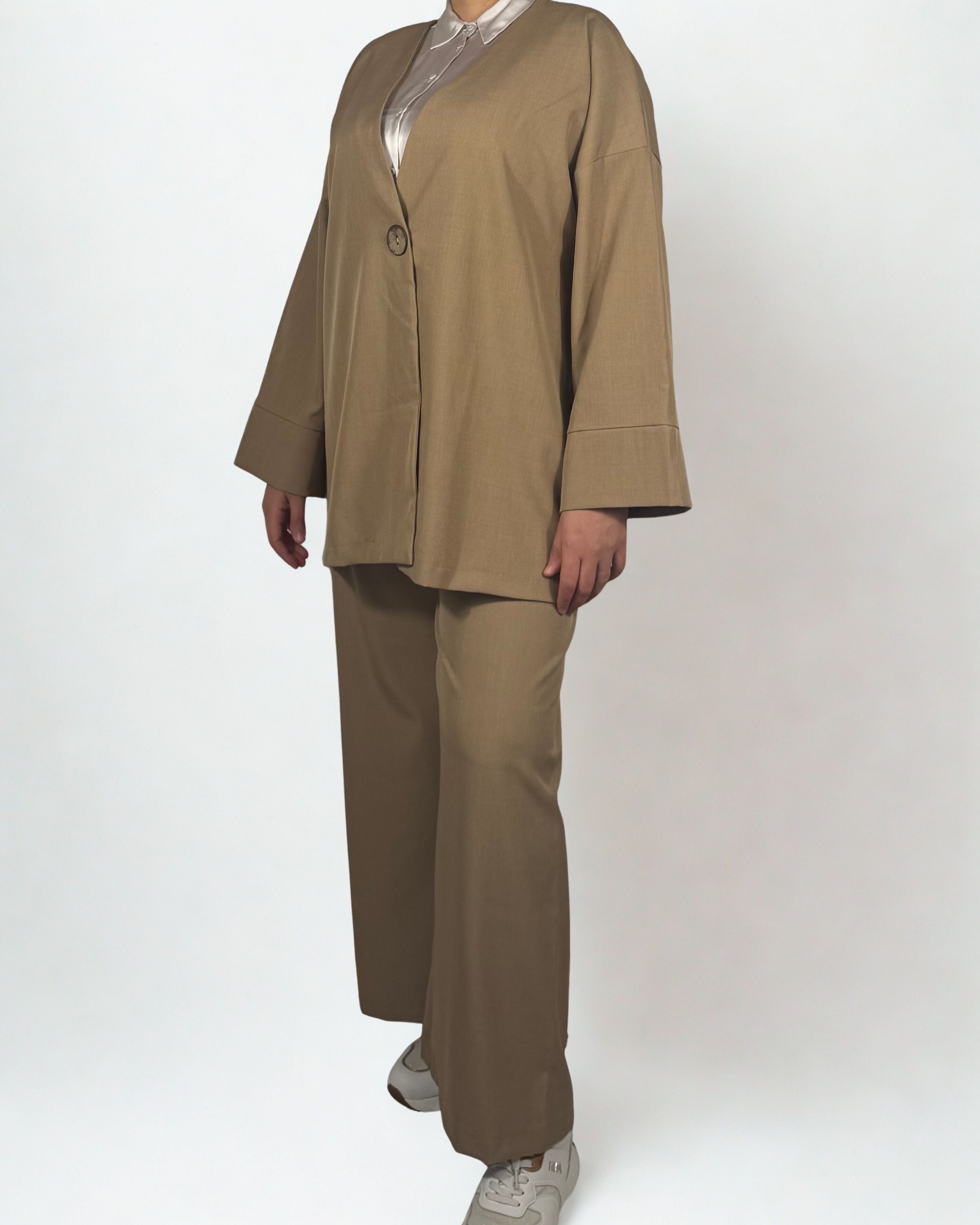 Eleganter Zweiteiler mit Jacke und Hose – fließend, stilvoll und bequem
