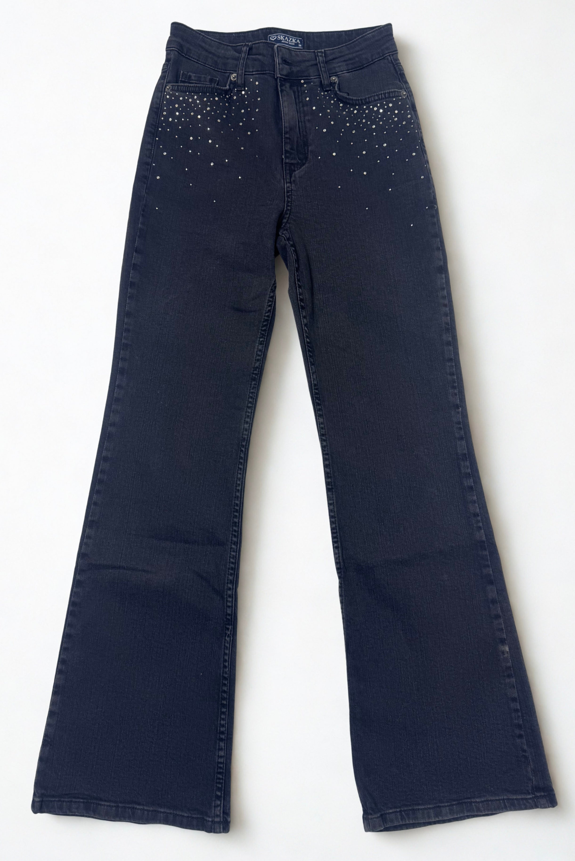 Glitzer-Flared Jeans in Dunkelgrau